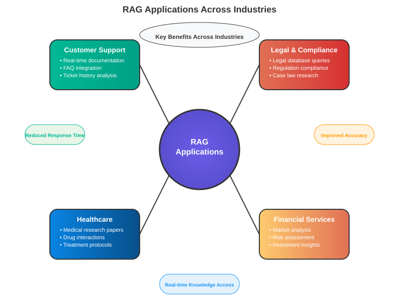 Law firms leverage RAG to query vast legal databases, ensuring responses are grounded in current regulations and case law.